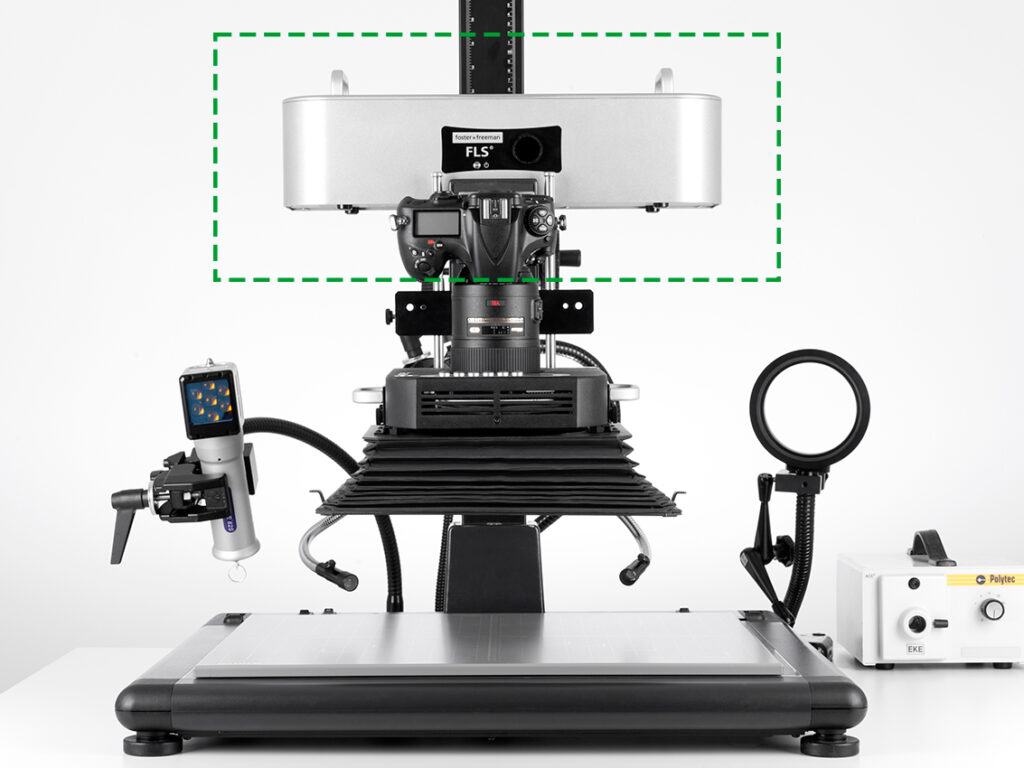 The FLS is a filtered light source which grants access to 600 different wavelengths of light, from 400-1000nm. This gives us access to fine-tune not only the colour, but the actual wavelength of light that is being used to illuminate the sample, an ability which can be particularly useful and effective for contrast imaging.