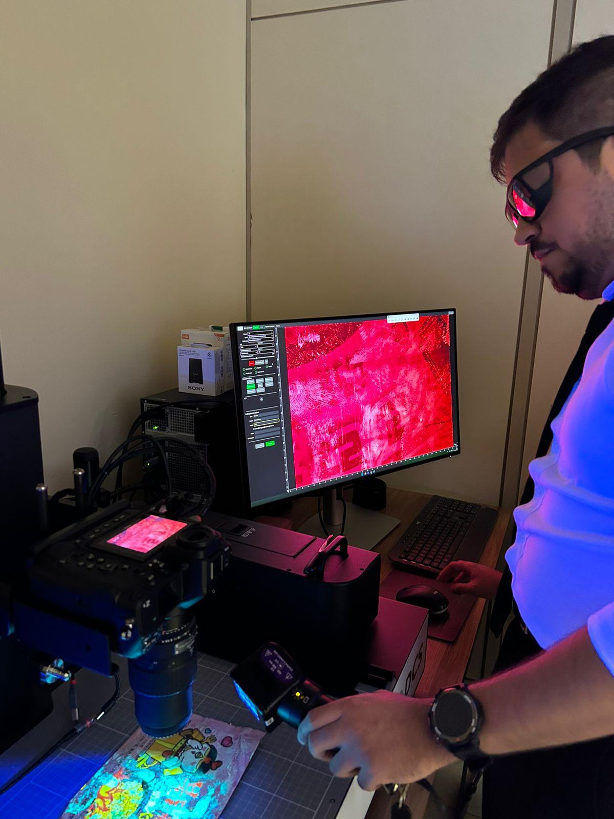 The purpose of the purchase was to challenge this paradigm and bring other fundamental knowledge to the analysis, such as notions of professional photography, the use of optical filters, and lights at various wavelengths.