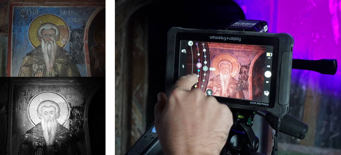 A team of experienced conservators selected the Crime-lite AUTO when embarking on a trip to uncover hidden details within the Byzantine artwork of Mount Athos. Through the use of a combination of UV, visible, and Infrared imaging, the team of experts successfully revealed significant features in the artworks that had remained hidden from view for hundreds of years. The portability of the device proved vital to the success of the project, where moving the artworks to a lab setting would have been impossible.